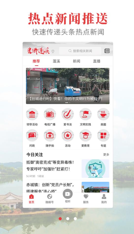 书乡蓬溪app最新版是一款用心打造的手机生活新闻资讯服务软件。用户可以快速获取最新、最全面的资讯信息,最新的热点新闻、财经资讯、科技咨询等,还有最新的高考政策、考试咨询等教育信息,更好地为学生服务。同时提供实用的查天气、查询快递、购物充值、直播等多项服务功能,让你生活更简单,喜欢的小伙伴快来下载吧。