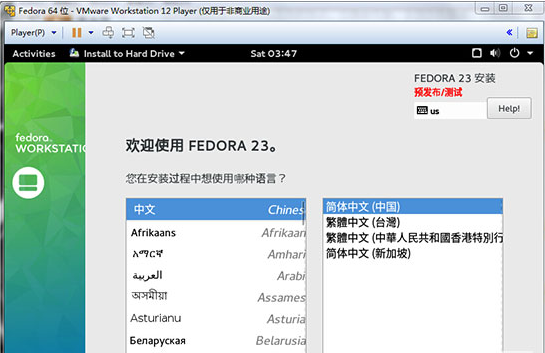 15、安装配置全部完成后,重启虚拟机就可以使用了Fedora 23系统了
