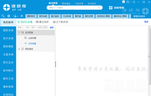 建标库电脑版包括国家规范、国标图集、施工验收、注册考试、行业标准、地方法规、地区图集、省标图集、法规公告、图纸空间、云盘资源、专家答疑、建筑书城、商城等;专业分类包含建筑、结构、给排水、采暖通风、电气、消防、规划园林、道路桥梁、工程监理、工程造价、室内装饰、房地产、效果渲染、建筑风水、BIM、图纸等。