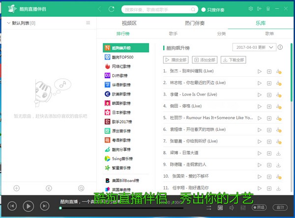 酷狗直播伴侣(酷狗繁星伴奏)功能特点: