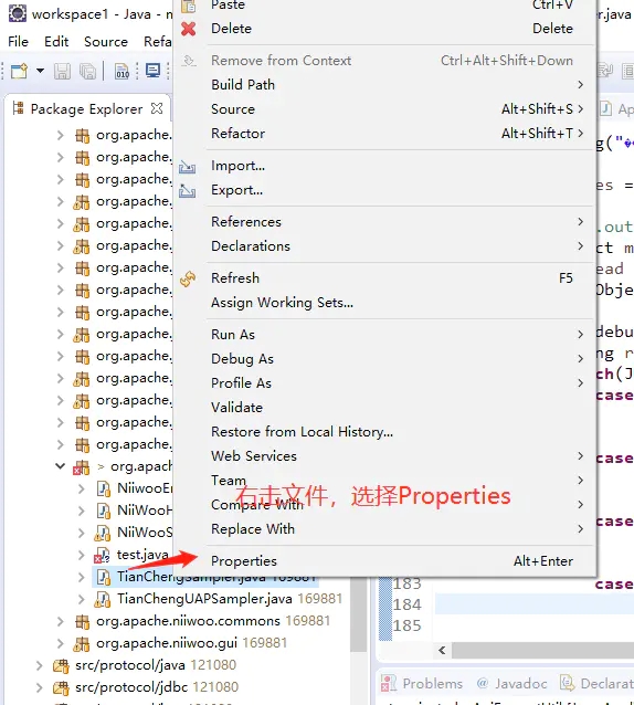 右击项目工程,在弹出的菜单中选择最后一项“Properties”。