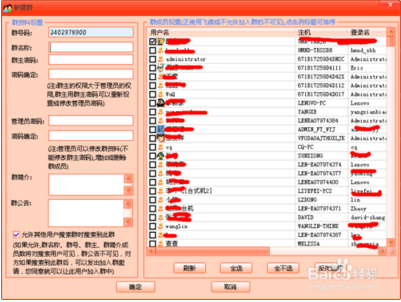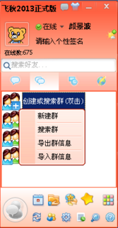 6、此时即可看到所有设置网段的好友了,下看看如何创建群。点击上方“2个泡泡”的按钮,打开群画面,按提示,双击后选择“新建群”,如图所示: