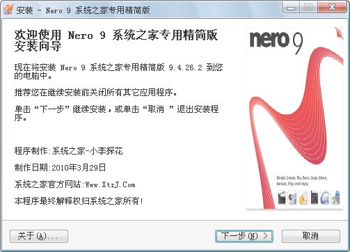 nero9中文免费版已经完全激活。自带VC++2005运行库,安装程序会自动为您安装。在Windows7下测试通过,以及Win7下的虚拟XP环境测试通过。这次发布的nero9精简版有点大,都将近40MB了,原因是保留了官方完整的“刻录”功能,支持添加媒体文件后自动转换功能,对刻录VCD、SVCD、DVD视频,甚至BD视频等都提供了良好的支持。