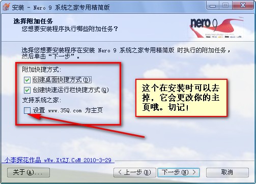 注意:安装的时候有这个提示的时候,记得把这个设置主页给勾掉,这样对你的电脑就同有任何影响了!